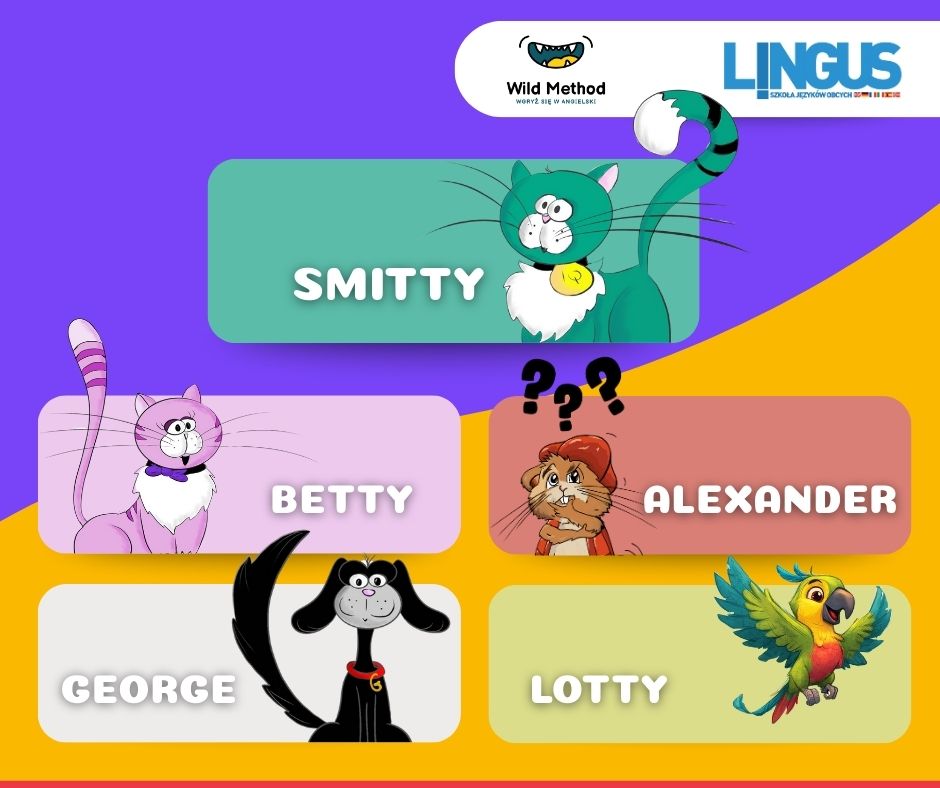 Na każdym etapie nauki dzieciom towarzyszą sympatyczni bohaterowie podręczników: różowa kotka Betty, zielona kotka Smitty, papuga Lotty, piesek George i chomik Alexander Reminder.