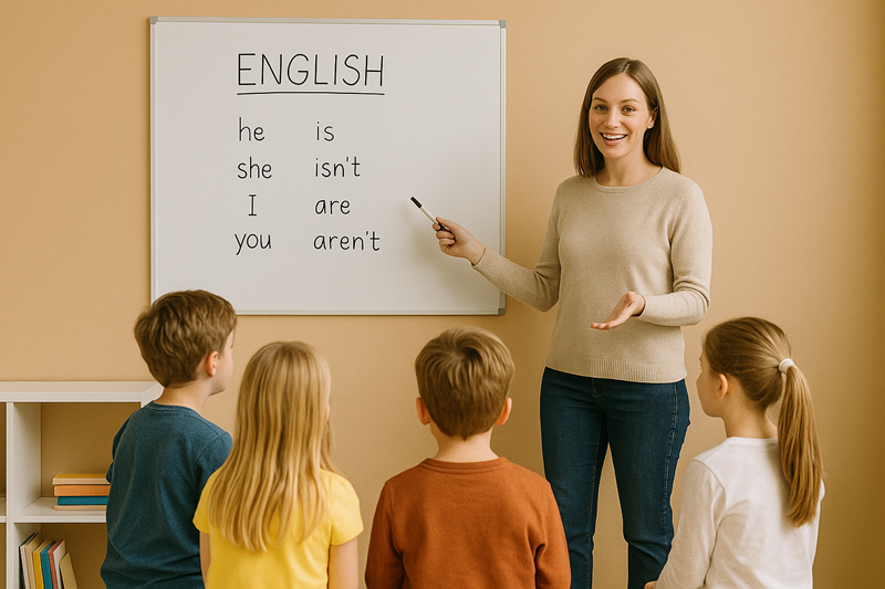 Dzieci nie uczą się słówek „na pamięć”, lecz poznają je w kontekście poprawnych zdań, używanych w praktycznych sytuacjach. To umożliwia dzieciom rozwijanie swoich umiejętności komunikacyjnych od początku nauki.